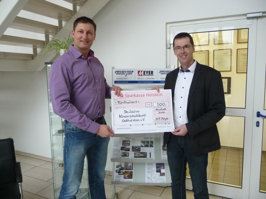 H. F. Meyer spendet für den Kinderschutzbund